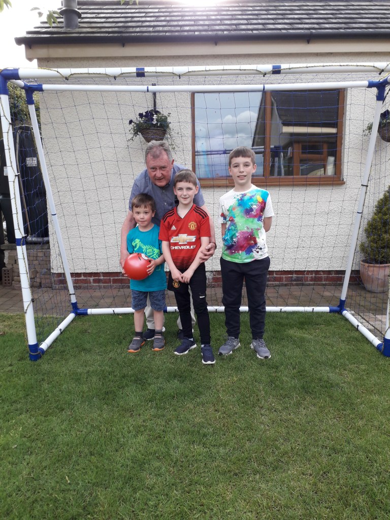 Conor with granda and his cousins testing out his new net